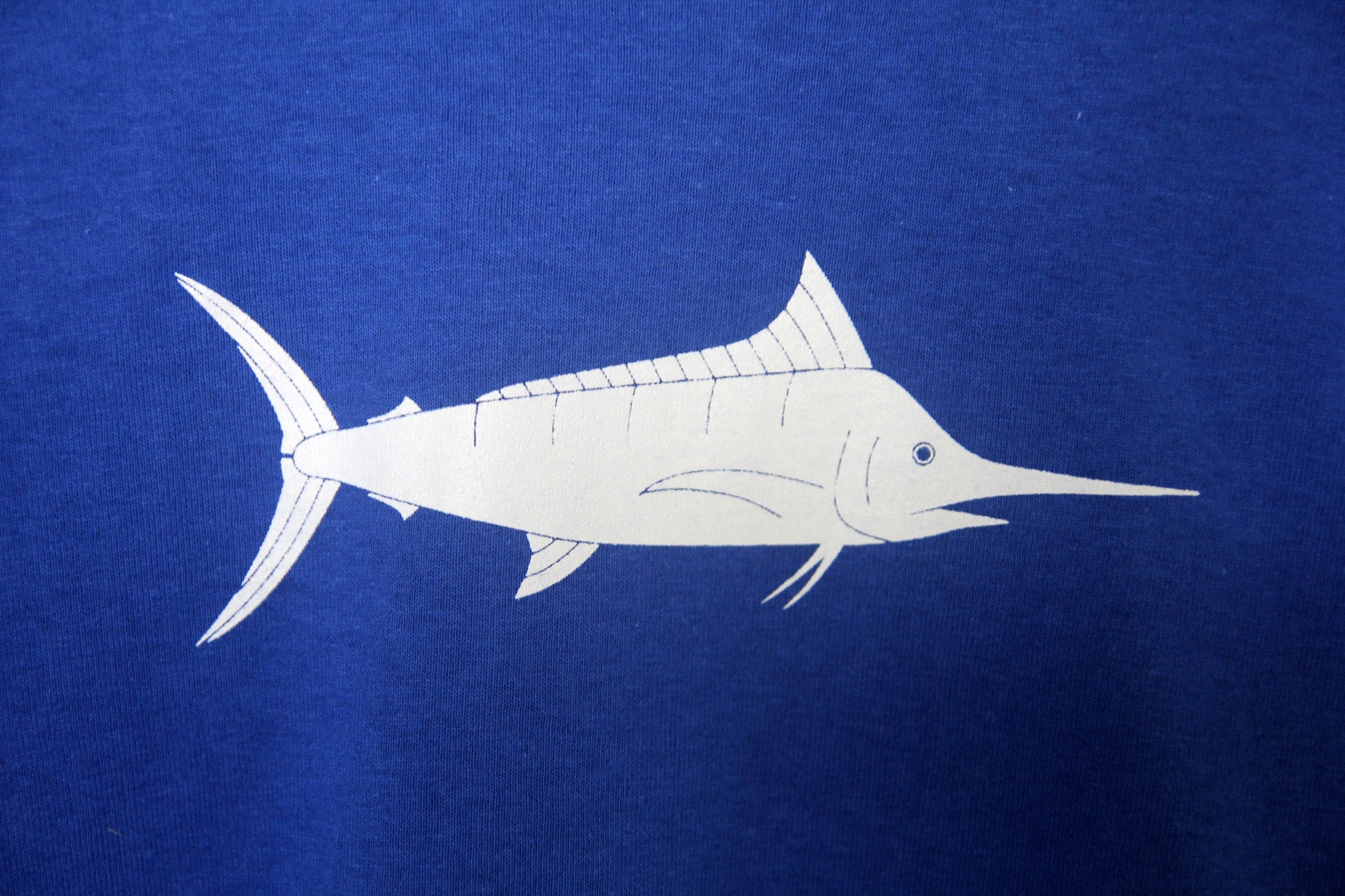 Our Marlin Kid's Tees are 100% Cotton. They feature an original and authentic fish design on the front and our Sundot Marine logo on the back.