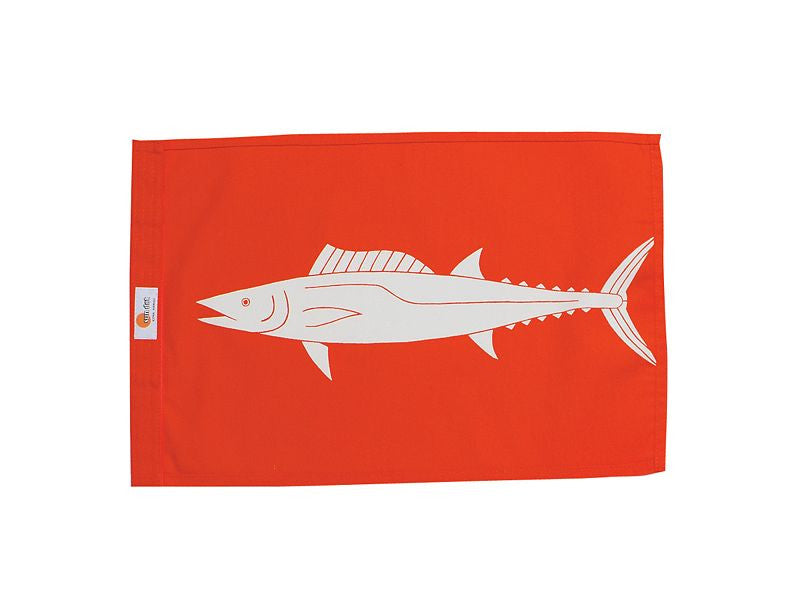 This flag features a white Wahoo (Ono) fish on an orange flag.
